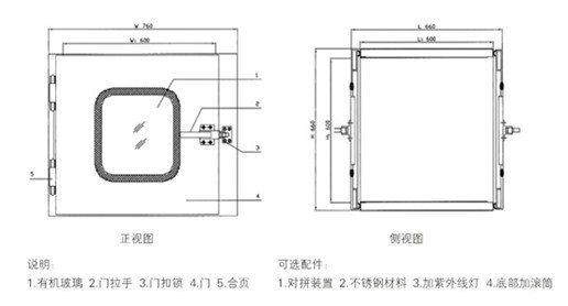 室之间传递小物件的设备,一方面起到气闸的作用,不让高等级的洁净室中高压被泄压,另一方面在传递过程中完成